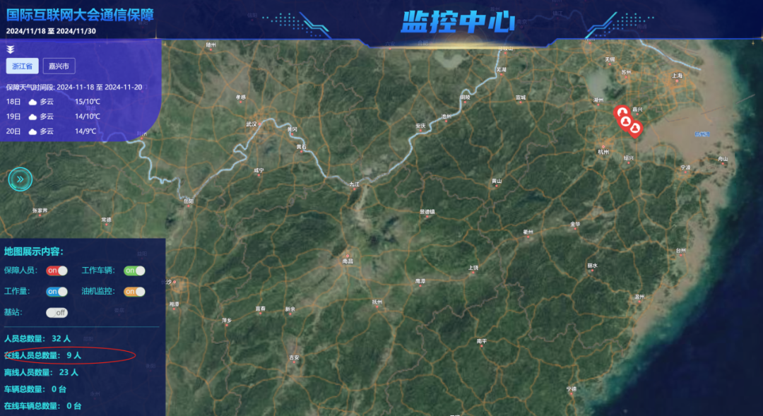 针对此次大会,元道通信提前部署,11月4日便组建了以省级公司领导挂帅的工作领导小组,运维重保团队紧密跟随领导小组的步伐,积极响应上级部门及行业主管部门的总体部署安排,成立“世界互联网大会通信保障突击队”进行现场保障。公司通过与各方构建高效的“互动协同”共享机制,全力做好通信保障的各项前期筹备工作,确保人力与物力资源能够在关键时刻及时调配、精准支援。活动期间,严格遵循主管部门的统一调度,选派精干力量驻守活动现场及周边区域,为大会通信网络的稳定运行提供了坚实的人力与组织保障。