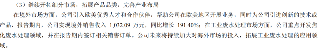上市之后,嘉戎技术正向环境技术全产业链公司转型,已经在非膜技术装备和工艺的开拓方面取得突破,并在采用物理蒸发方式的低温负压蒸发设备,以及采用生化技术的中转站/餐厨垃圾渗滤液处理设备方面均有斩获。此外,嘉戎技术还在上半年成功打入欧美等发达地区的国际市场,并在焦化废水领域签下订单,持续为现有产品、技术拓展细分市场。