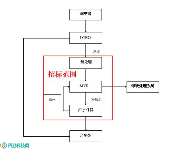 处理规模:该项目二期渗滤液处理 200m3/d,采用“预处理+MVR 低温蒸发+产水保障”工艺进行处理,MVR 低温蒸发处理系统建设规模为 200m3/d