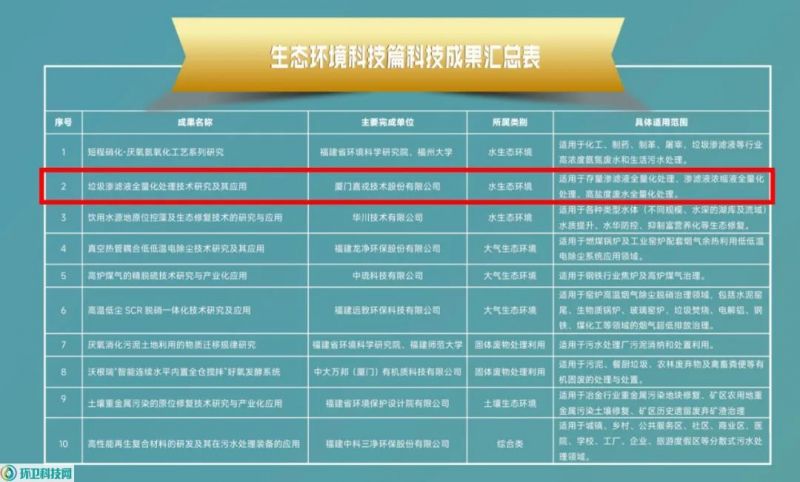 6月19日,2023年福建省生态环境项目成果发布会在福州海峡国际会展中心隆重举办。发布会上,生态环境相关的32个项目案例、10项前沿技术、10项金融成果,并邀请高校、科研院所专家分享对生态环境项目工作的思考与建议。嘉戎技术“垃圾渗滤液全量化处理技术研究及其应用”,入选福建省生态环境项目成果-科技篇。