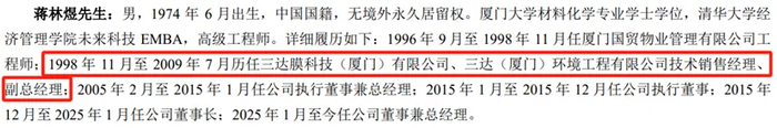 说起来,嘉戎技术和三达膜之间,关系可不浅。不仅两家公司的核心产品都是“工业废水处理及过程分离装备”,彼此是直接的竞争关系,而且嘉戎技术的董事长董正军此前曾担任三达膜的工程师,实控人蒋林煜更是曾官至三达膜的副总经理。