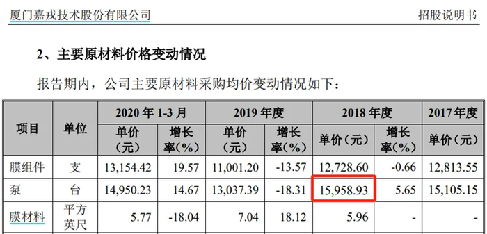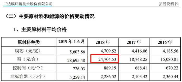 也即,但从价格来看,嘉戎技术采购的泵,比三达膜要便宜得多,但最终组装成的“工业废水处理及过程分离装备”,售价却被三达膜还略高。这体现在2018年的数据中,嘉戎技术的毛利率为46.95%,比三达膜同年的41.71%,高出了5个百分点。