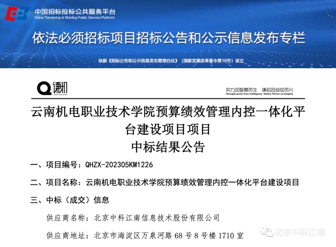 近日,中科江南在云南省行政事业单位内控市场迎来双喜,相继成功中标云南机电职业技术学院预算绩效管理内控一体化平台项目和红河职业技术学院内控财务一体化项目。