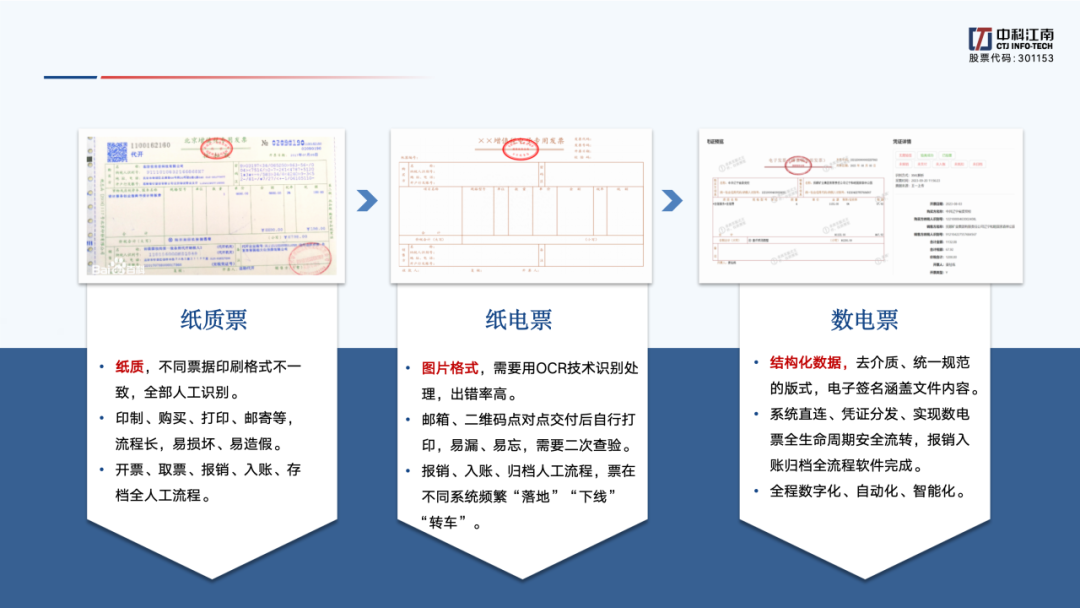 中科江南是财政部等9部门电子凭证会计数据标准深化试点服务保障单位,中科江南电子凭证综合服务平台是电子凭证开具分发试点平台。财政部《电子凭证会计数据标准深化试点工作简报》(第11期)对公司积极主动按照深化试点要求探索提升服务能力,摸索出一条“集约化处理、标准化应用”一站式服务模式,助力多省财政部门、企事业单位高质高效推进深化试点工作的典型案例进行了刊发。
