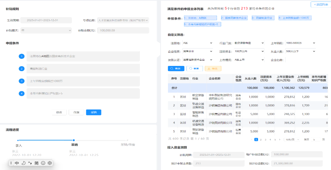 价值提升:一是实现财政视角的专项资金全流程管理支持,从申报、拨付、投效等方面综合评价专项资金使用的效果和效率;二是通过专项资金政策模拟,从财政可承受能力、资金覆盖度与合理性等方面对政策制定提供辅助决策支持;三是利用大模型的推理与分析能力为专项资金运行进行评价与建议,不断优化提升专项资金的价值与成效。