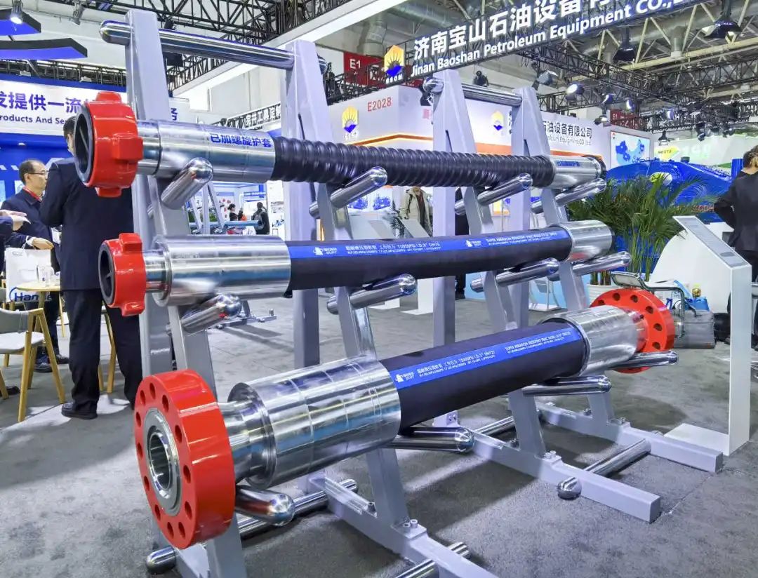 同时,陈成先生指出:“这款软管尤其适用于超高压、复杂介质这种苛刻环境的压裂施工作业,是压裂作业的安全性与经济性的双重保障。”发布会后,中外客户纷纷驻足展台咨询交流,现场气氛热烈。