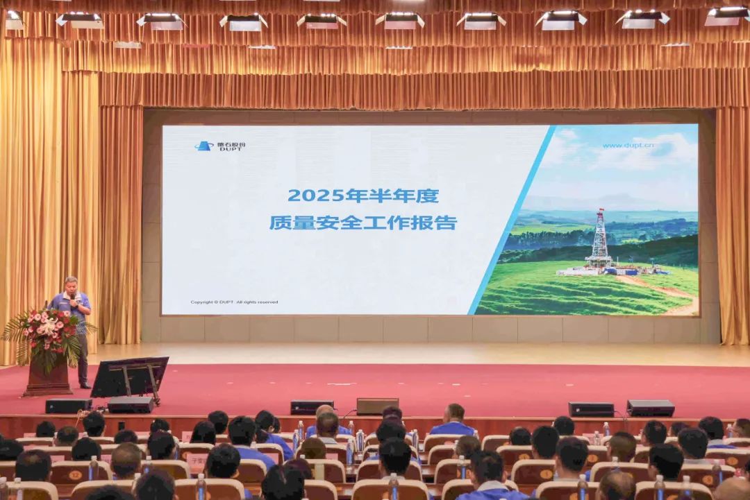 在庄严肃穆的奏唱国歌仪式后,会议正式进入核心议程。公司副总经理、总工程师贾延军先生率先做《2025年半年度安全质量工作报告》,对公司上半年HSE板块和质量板块的工作内容进行了详细汇报和梳理,重申公司对“零事故”安全目标与“零缺陷”质量标准的铁律坚守,强调这是对客户、员工及企业百年基业的庄严承诺。