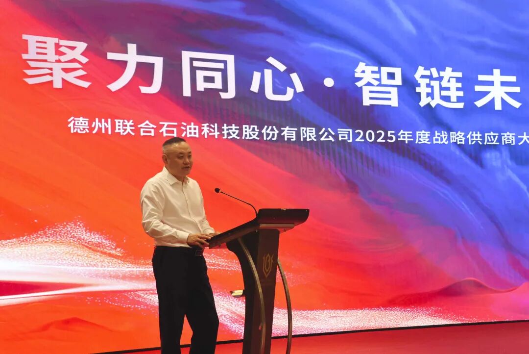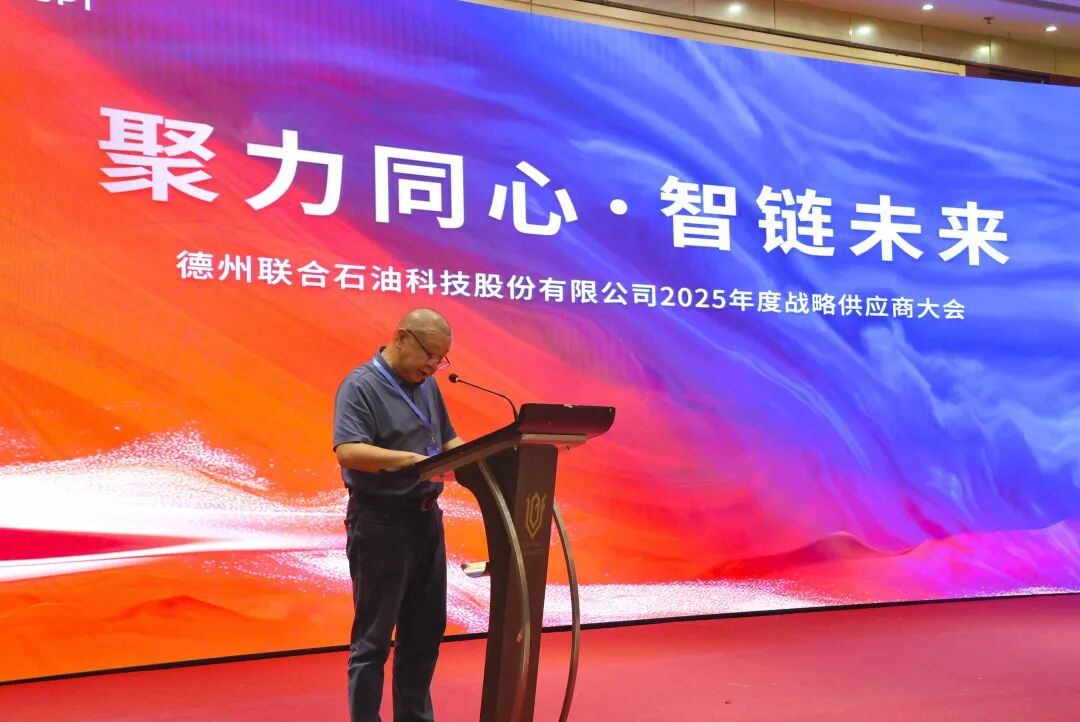 随后,供应管理部、行政管理部总监王泽涛先生围绕行业趋势与战略合作发表讲话。他指出,当前石油机械行业正面临深层勘探、数字化智能化转型、供应链区域化重构和绿色低碳转型四大趋势,强调唯有协同合作才能构建更具韧性和可持续性的供应链生态。呼吁以本次大会为新起点,“以信任为桥、以质量为基、以创新为翼、以廉洁为纲”,深化合作、智链未来。