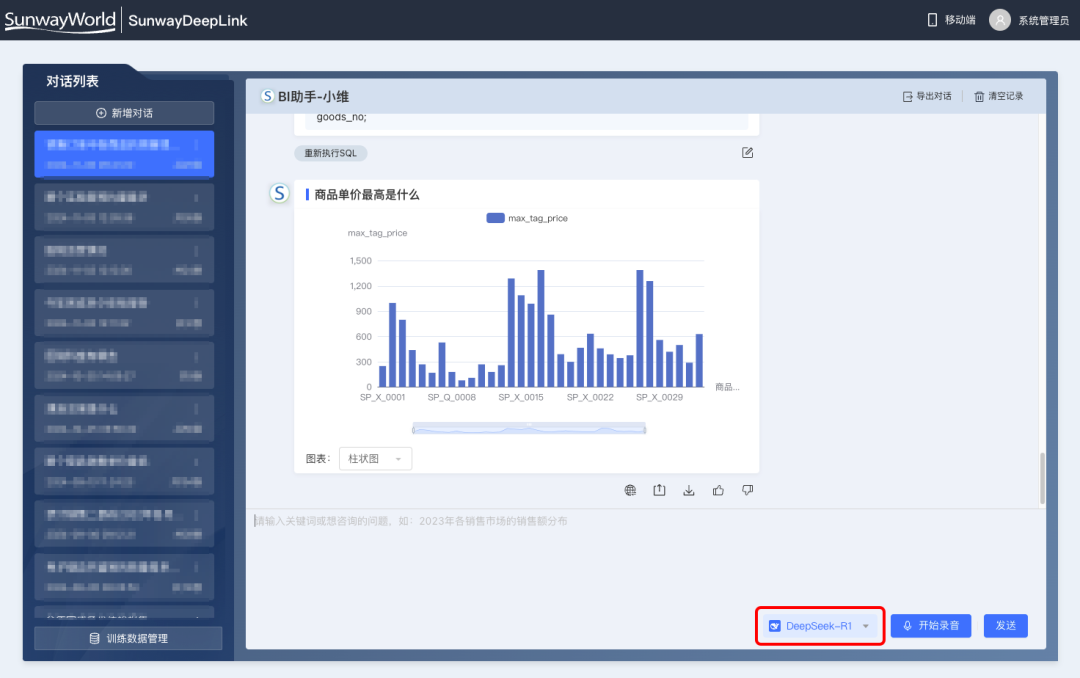 三维天地,作为数据资产管理领域的领军企业,始终致力于为企业提供更精准、更先进的智能化解决方案。并积极推动AI技术与数据资产管理业务的融合应用,近期推出的全新人工智能体产品——SunwayDeepLink智能体,集ChatBI和ChatDOC两大功能于一身,与DeepSeek(深度求索)实现全面深度适配,旨在为企业构建一个“数据-洞察-决策”一体化的管理平台,为企业数据资产管理进一步赋能增效!