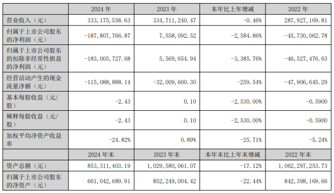 三维天地(301159.SZ)2024年年度报告显示,公司实现营业收入3.33亿元,同比下降0.46%;归属于上市公司股东的净利润-1.88亿元,上年同期为755.81万元;归属于上市公司股东的扣除非经常性损益的净利润-1.83亿元,上年同期为556.97万元;经营活动产生的现金流量净额-1.15亿元,上年同期为-3200.96万元。