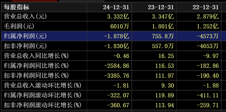 2022年至2024年,三维天地的营业收入分别为2.88亿元、3.35亿元、3.33亿元,归属于上市公司股东的净利润分别为-4,573.01万元、755.81万元、-1.88亿元,归属于上市公司股东的扣除非经常性损益的净利润分别为-4,652.75万元、556.97万元、-1.83亿元,经营活动产生的现金流量净额分别为-4,790.66万元、-3,200.96万元、-1.15亿元。
