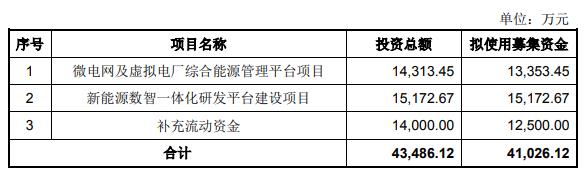 国能日新首次公开发行股票募集资金总额为8.00亿元,募集资金净额为7.12亿元,比原计划多3.67亿元。国能日新2022年4月21日发布的招股说明书显示,该公司拟募集资金3.45亿元,分别用于新能源功率预测产品及大数据平台升级项目、新能源控制及管理类产品升级项目。