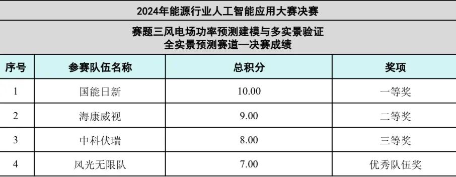 人工智能技术在能源领域应用,可全面提升新能源从开发到利用各环节效率,助力电力系统稳定、高效运行,推动智能、坚强的新型电力系统建设。国能日新基于自身在新能源功率预测领域的创新技术与经验积累,参与本次大赛的“风电场功率预测建模与多实景验证(全实景预测赛道)”竞技,以高效AI算法技术在比赛中取胜,充分彰显卓越的技术实力与专业性。