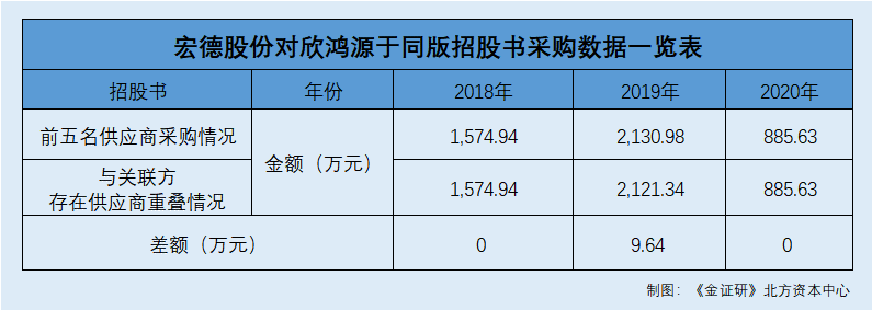 根据《金证研》北方资本中心研究,若以2,121.34万元作为2019年销售额测算的话,欣鸿源与宏德股份累计交易金额为4,581.91万元。