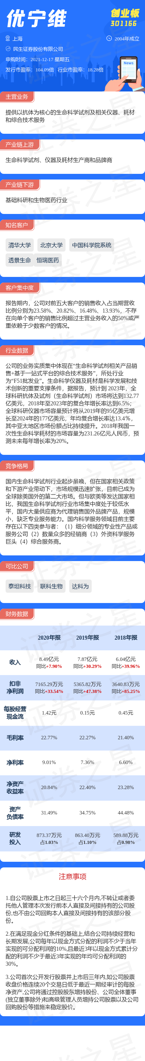 优宁维12月17日网上申购,申购代码为301166,中签号公布日期为12月21日。该股概况请见下图: