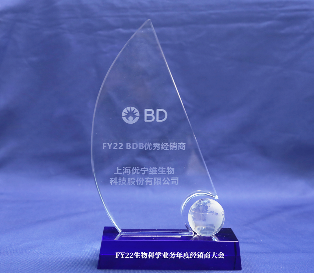8月5日,BD(碧迪医疗生物科学)在苏州举办了“FY22生物科学业务年度经销商大会”。优宁维在会上荣获“FY22BDB优秀经销商”奖。