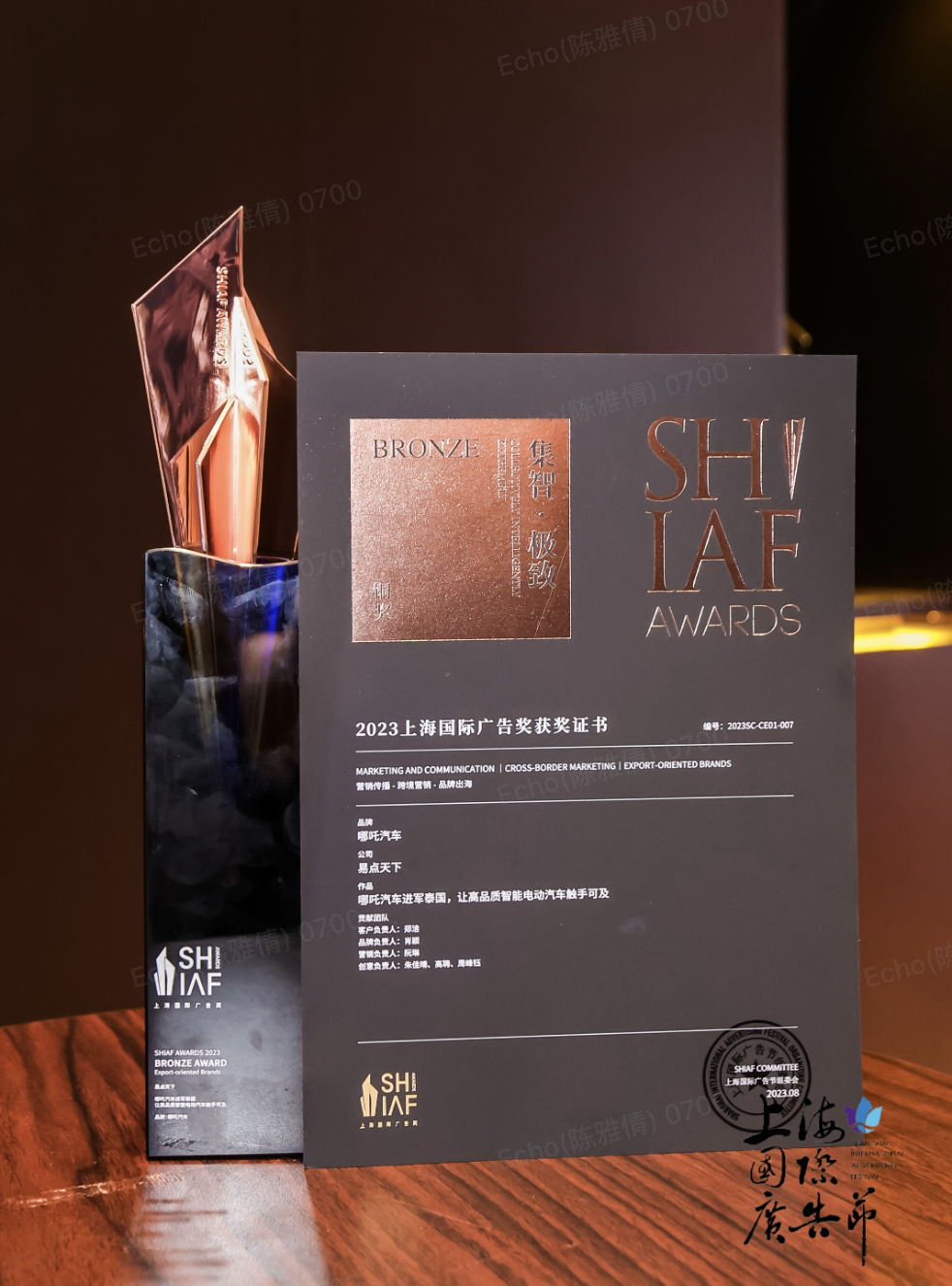 近日,2023上海国际广告奖获奖名单公布,易点天下携手哪吒汽车海外社媒营销案例,荣获上海国际广告奖品牌出海组铜奖。