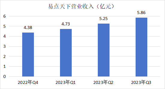 从易点天下过去几个季度披露的数据来看,营业收入已经呈现出持续复苏的态势。2022年四季度到2023年三季度,公司实现营业收入分别为4.38亿元、4.73亿元、5.25亿元和5.86亿元。
