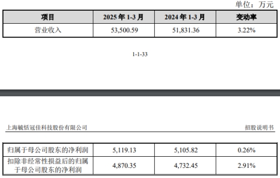 2025年1至3月,公司营业收入预计为53,500.59万元,较上年同期增长3.22%;公司归属于母公司股东的净利润预计为5,119.13万元,较上年同期增长0.26%;公司扣除非经常性损益后的归属于母公司股东的净利润预计为4,870.35万元,较上年同期增长2.91%。
