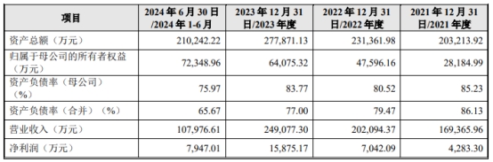 2021年至2023年,毓恬冠佳营业收入分别为169,365.96万元、202,094.37万元、249,077.30万元,净利润分别为4,283.30万元、7,042.09万元、15,875.17万元;归属于母公司所有者的净利润分别为4,283.30万元、7,137.26万元、15,965.39万元,扣除非经常性损益后归属于母公司所有者的净利润分别为4,090.55万元、6,612.12万元、15,487.09万元,经营活动产生的现金流量净额分别为15,418.15万元、14,033.59万元、28,173.75万元。各期公司销售商品、提供劳务收到的现金分别为166,178.32万元、185,591.78万元、243,341.91万元。