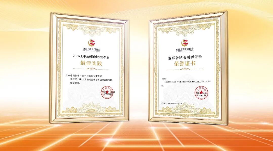 近日, 中国上市公司协会 公布“2025年度上市公司董办最佳实践案例”和“2025上市公司董事会秘书履职评价”评选结果。 中科环保 获上市公司董办最佳实践案例和董事会秘书履职评价5A级最高评级。
