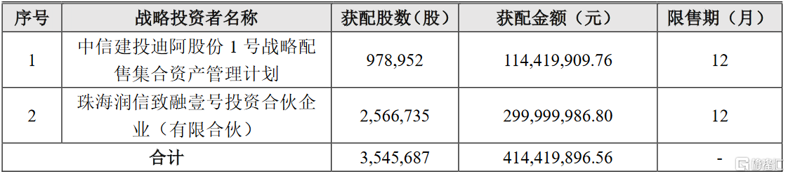 战略配售情况,确定此次发行战略配售结果如下:
