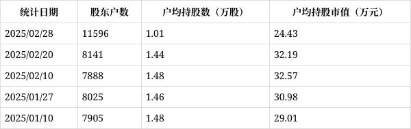 从3月3日公开信息显示,标榜股份截至2025年2月28日公司股东户数为1.16万户,较上期(2025年2月20日)增加3455户,增幅为42.44%,持股趋于分散。