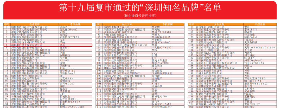 本次第十九届“深圳知名品牌”培育评价活动前后历时5个多月。经评价委秘书处资格审查,对符合申报条件的企业按照《深圳知名品牌评价规范》团体标准,秘书处组织开展企业管理体系现场评审、公众投票、行业地位评价、品牌价值评估等综合评价工作,共审核评选出市场占有率高、诚信度高、品牌知名度高的品牌榜单结果。