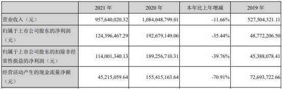 4月27日讯昨日晚间,奥尼电子(301189.SZ)发布了上市后的首份年报。2021年,公司实现营业收入9.58亿元,同比减少11.66%;归属于上市公司股东的净利润1.24亿元,同比减少35.44%;归属于上市公司股东的扣除非经常性损益的净利润1.14亿元,同比减少39.76%;经营活动产生的现金流量净额4521.51万元,同比减少70.91%。