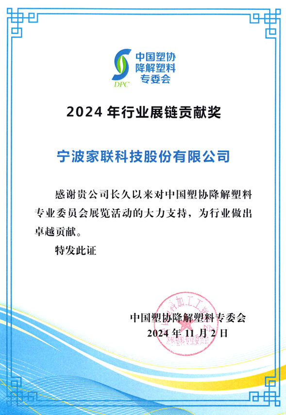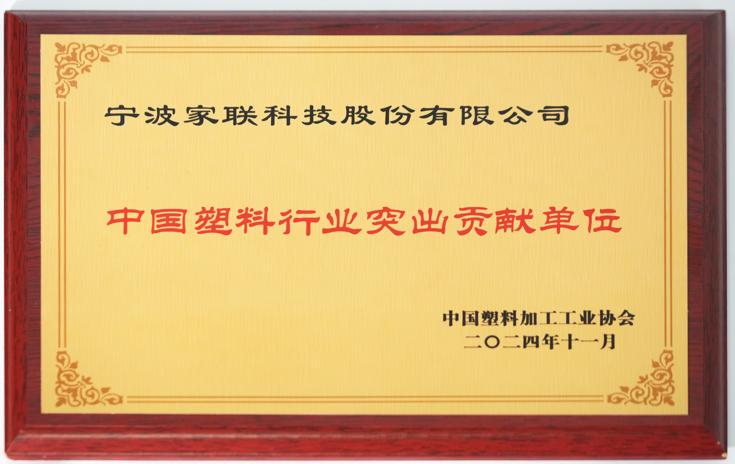 凭借在环保低碳产品领域地不断探索与智能智造技术地应用,家联科技在此次展会上荣获了塑料行业突出贡献奖与优秀品牌奖双项殊荣。这两项荣誉不仅是对家联科技在环保低碳产品方面创新成果的肯定,也彰显了其在行业内的领先地位。
