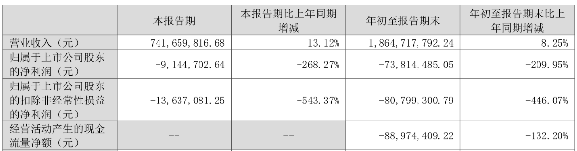 家联科技 (301193.SZ)近日披露2025年第三季度报告。前三季度公司实现营业收入18.65亿元,同比增长8.25%;归属于上市公司股东的净利润为-7381.45万元,上年同期为6713.59万元;归属于上市公司股东的扣非净利润为-8079.93万元,上年同期为2334.74万元;经营活动产生的现金流量净额为-8897.44万元,上年同期为2.76亿元。