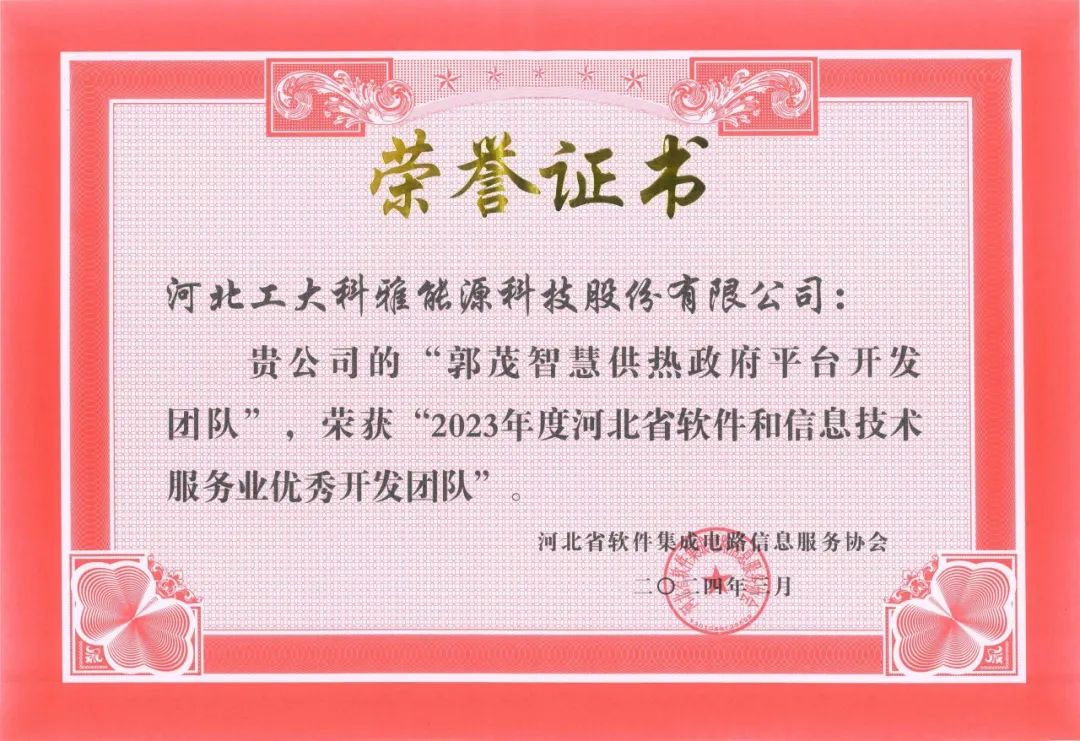 郭茂智慧供热政府平台开发团队荣获“2023年度河北省软件和信息技术服务业优秀开发团队”。