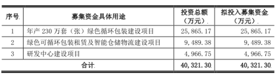喜悦智行发行募集资金总额为5.44亿元,扣除发行费用后,募集资金净额为4.84亿元。喜悦智行最终募集资金净额比原计划多8035.56万元。喜悦智行于2021年11月29日披露的招股书显示,公司拟募集资金4.03亿元,分别用于年产230万套(张)绿色循环包装建设项目、绿色可循环包装租赁及智能仓储物流建设项目、研发中心建设项目。