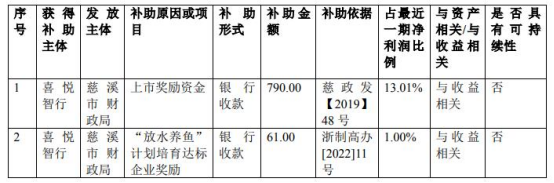 喜悦智行7月9日发布关于获得政府补助的公告。宁波喜悦智行科技股份有限公司近日获得下发的政府补助资金人民币851.00万元。其中,与收益相关的政府补助金额为851.00万元,与资产相关的政府补助金额为0.00万元。