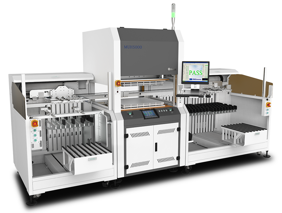 新能源汽车三电系统及充电设备、ICT设备DC-DC模块、光伏逆变器等都需要具备耐超高压冲击的能力,为满足应用于该类终端的PCB超高压耐压测试,大族数控推出MUH5000系列产品。该产品用于PCB板线路进行电气间隙、爬电距离批量耐压安规测试。提供最大1024点高压测试通道,最高测试电压6000V;回路检查与火花侦测是MUH5000系列的两大利器,加上有拼板分单元测试与激光快速单元标记的加持,最终MUH5000系列技压群芳,被客户冠以“耐压测试多面手”的美誉。