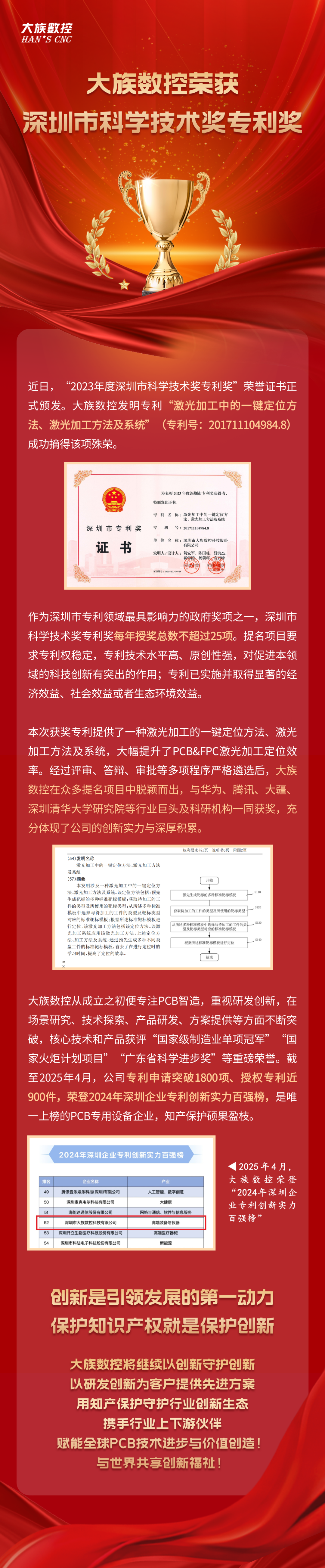 创新不辍!大族数控荣获“深圳市科学技术奖专利奖”