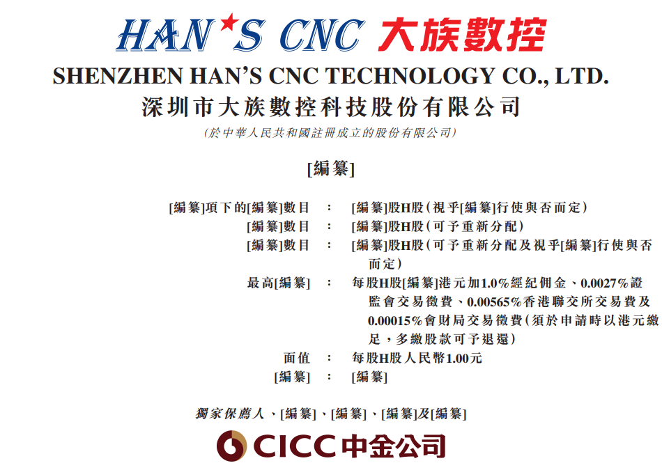 此前,深圳市大族数控科技股份有限公司向港交所主板递交上市申请,中金公司为独家保荐人。截至8月25日收盘,大族数控(301200.SZ)报89.17元/股,市值379.43亿元。