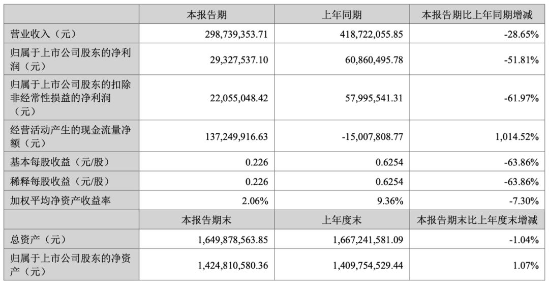 报告显示,联特科技上半年实现营收2.99亿元,同比下降28.65%;净利润2933万元,同比下降51.81%。扣非后净利润2205万元,同比下降61.97%。