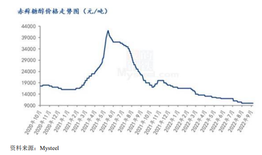 赤藓糖醇价格走势图,截取自三元生物公告。