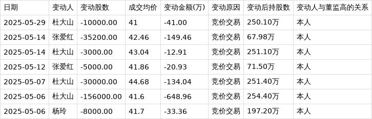 深交所公开信息显示,5月29日,中亦科技监事杜大山在竞价交易公司股票,减持股数1.00万股,成交均价41.00元,变动金额41.00万元,变动后持股数为250.10万股。