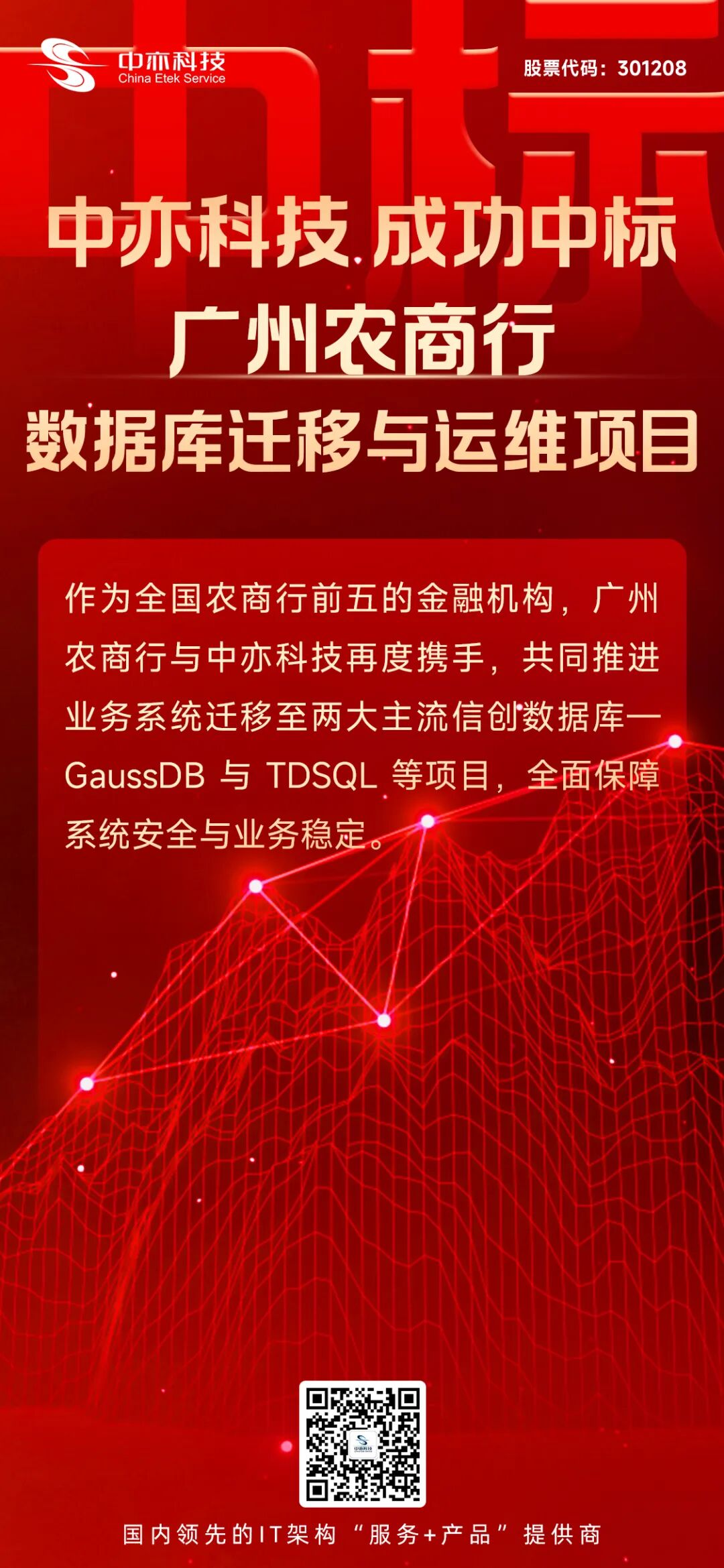 信创领域再落一子!中亦科技中标广州农商行数据库迁移与运维项目