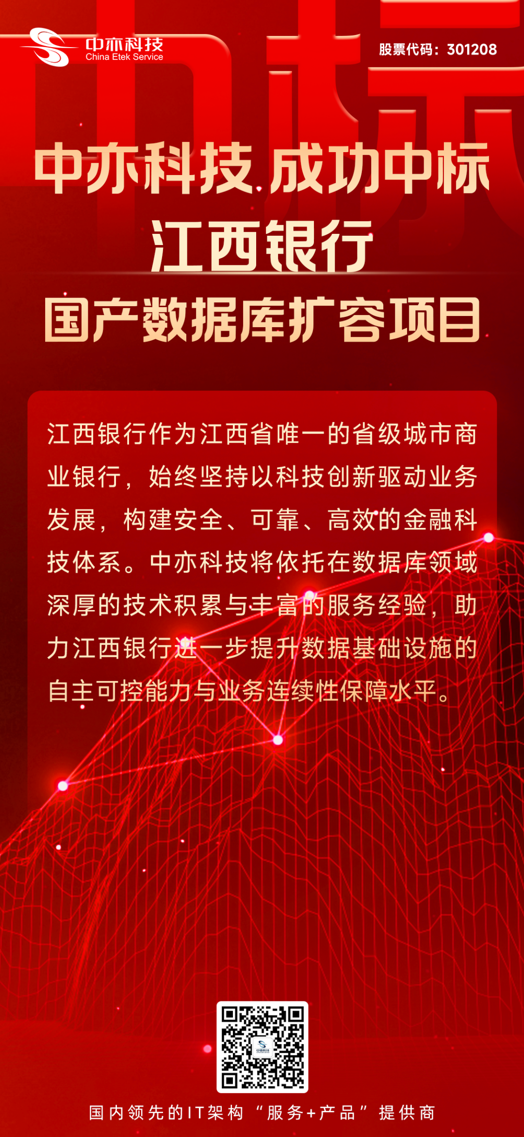 信创领域持续突破!中亦科技中标江西银行国产数据库扩容项目