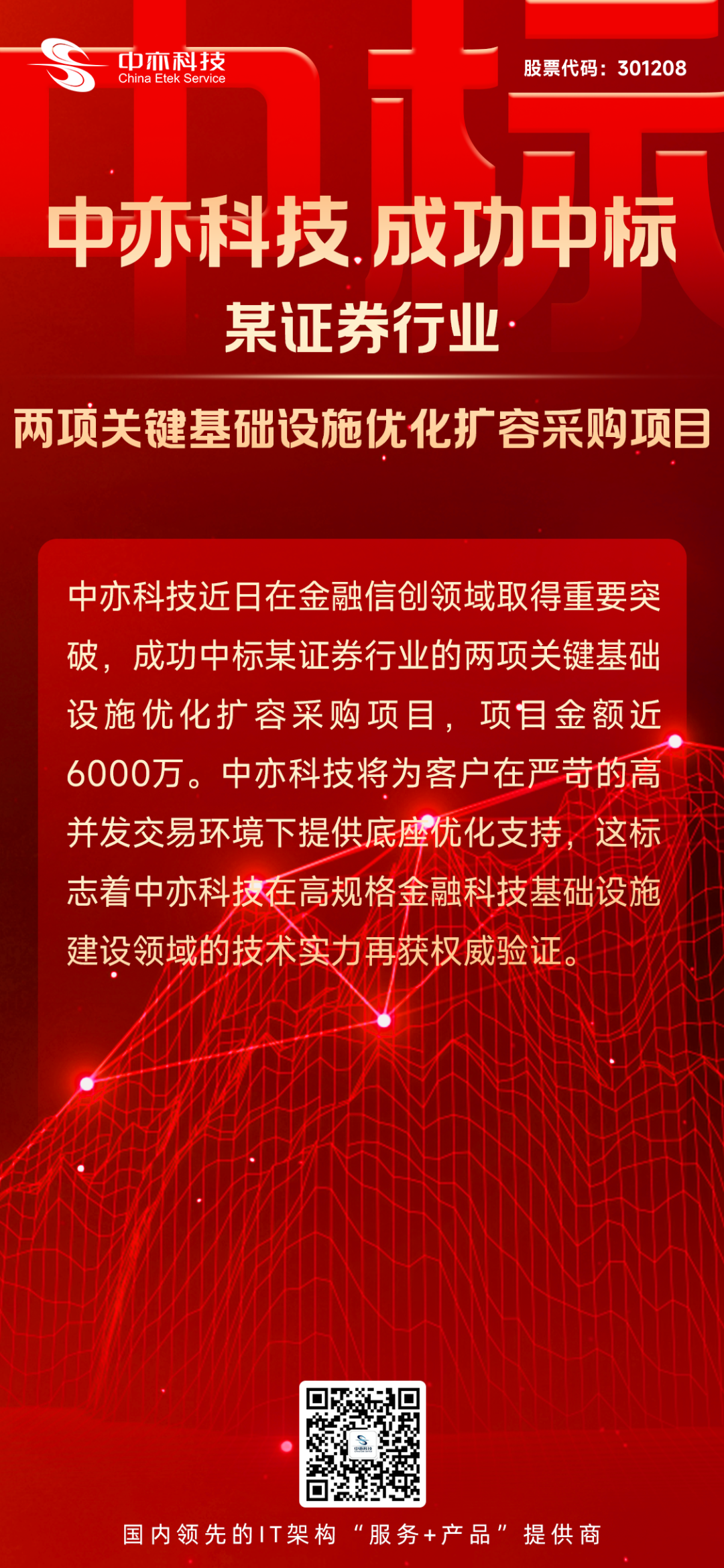 双中标!近6000万!中亦科技中标某证券行业金融信创两项关键项目