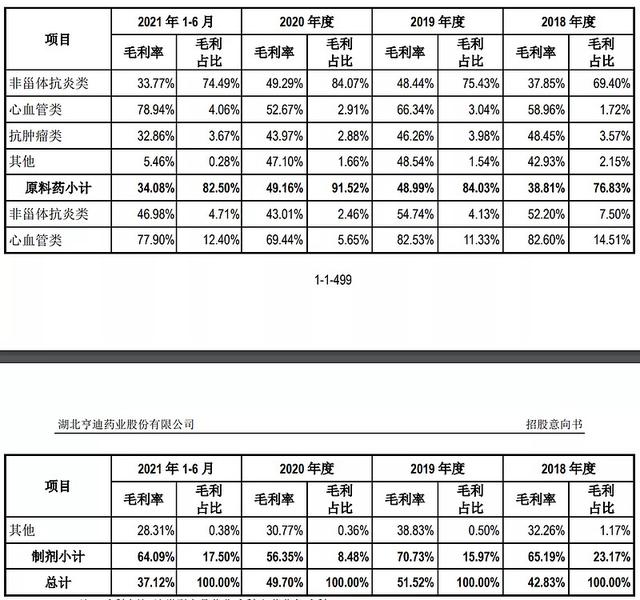 2020年和2021年上半年毛利率下降,主要是由于随着主要竞争对手的全面复产,布洛芬原料药市场供给增加,布洛芬原料药价格有所下滑。