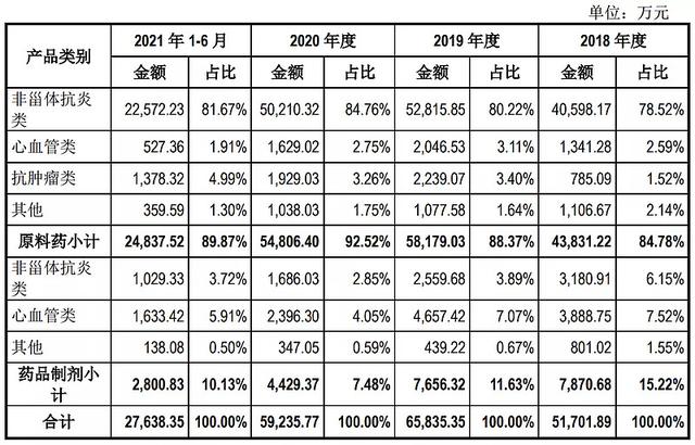 公司形成了以非甾体抗炎类原料药为核心,心血管类、抗肿瘤类等特色原料药为辅助的产品体系。