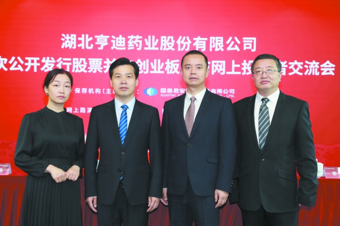 湖北亨迪药业股份有限公司首次公开发行股票并在创业板上市的网上路演即将结束。在此,感谢上海证券报中国证券网为我们提供这么好的沟通平台和优质的服务。同时,也十分感谢保荐机构国泰君安证券,以及所有为亨迪药业发行上市辛勤付出的朋友!