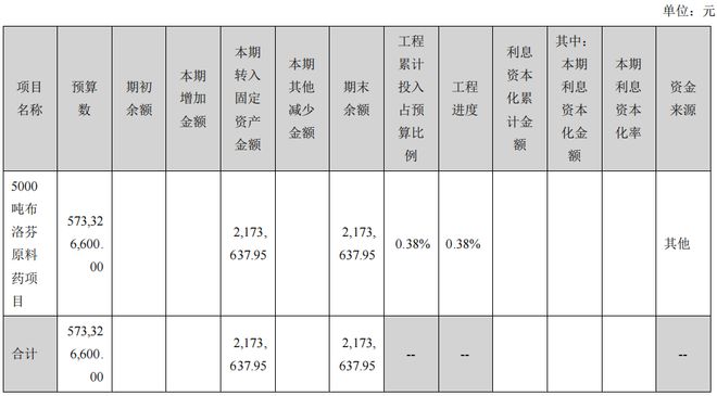 2022年8月30日披露的半年度募集资金存放与使用情况的专项报告显示,5000吨布洛芬的募投项目2022年度投入金额和累计投入金额都是空白。