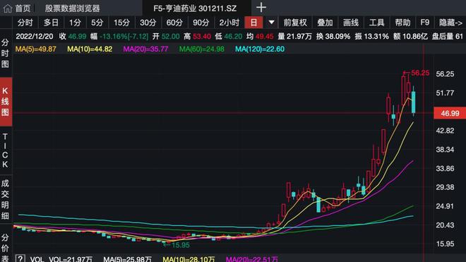 12月20日收盘,亨迪药业(301211)下跌13.16%。没有被连续两则异动公告受到太大影响的股价,在公司否认“政府征用布洛芬原料药”后的第二天,迎来大跌。