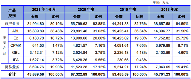 公司主要产品包括γ-丁内酯(GBL)、α-乙酰基-γ-丁内酯(ABL)、 N-甲基吡咯烷酮(NMP)、4-氯-2-三氟乙酰基苯胺水合物盐酸盐(E2)、环丙甲酮(CPMK)、异丙醇(IPA)、1,2-己二醇(HDO),生产过程中的副产品主要有氢气、乙醇、香蕉水、磷酸盐、氯化锂水溶液、2-甲基-4,5-二氢呋喃等。上述产品中,GBL、ABL、NMP、CPMK 均系以 BDO 为起始原料的生产线的延伸,公司在 BDO 产业链产品制造领域积累了丰富的生产经验,公司目前是国内 ABL 的主要供应商。公司经过多年的发展,形成了以 BDO 为起始原料的系列产品为主体并辅以其他特种化工产品(E2、IPA、HDO)的丰富产品格局。