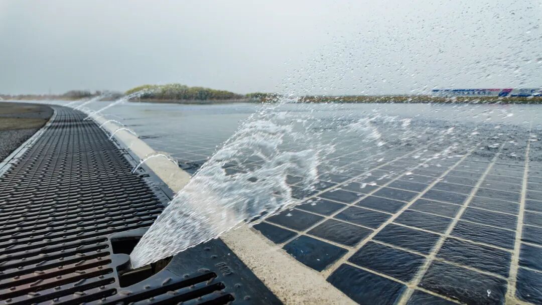 为了保证路面整体均匀性与长期稳定性,该测试区域创新引入模块化浇筑工艺,确保表面平整度误差≤1.5mm,模块间拼缝平滑无缝;此外,项目团队还自主研发了智能双向水系系统,独立可控的喷淋阵列消除了风力对水膜均匀性的干扰,将水膜厚度稳定控制在1±0.5mm范围内,实现全天候、高一致性的低附路面测试条件。